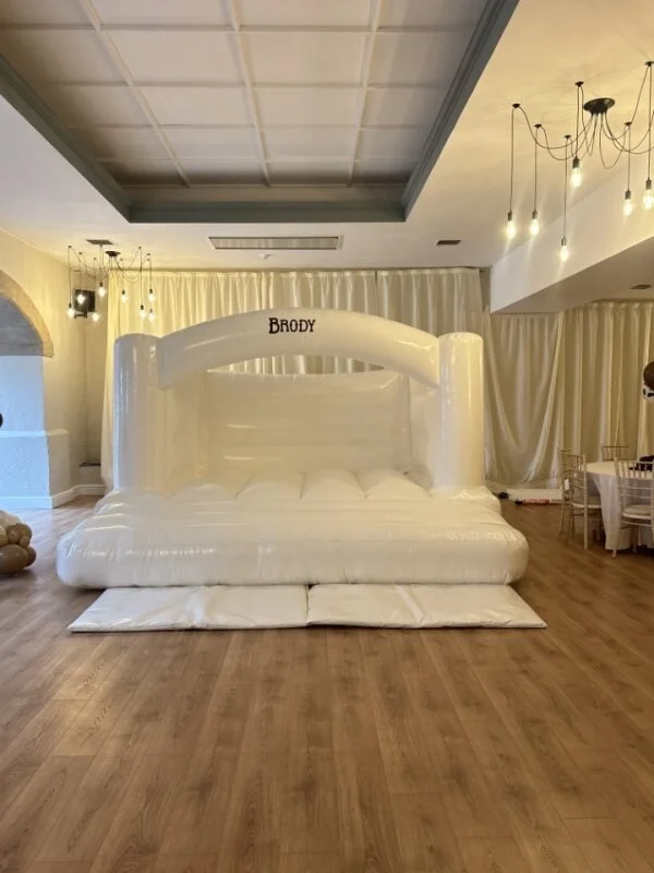 Our beautiful white 10ft x 12ft bouncy castle is a fun and stylish addition to any special occasion! It’s perfect for all kinds of events and can be personalised to match your theme, making it extra special for your day.